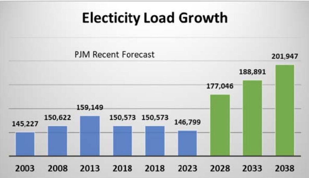 The manufacturing of ‘clean power’ products like solar panels and electric car batteries is also driving demand, requiring new factories and hook-ups to the grid.